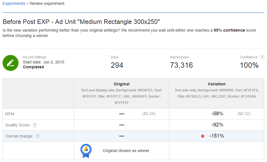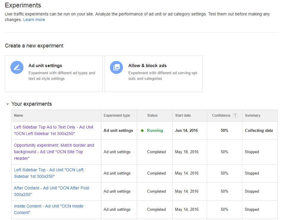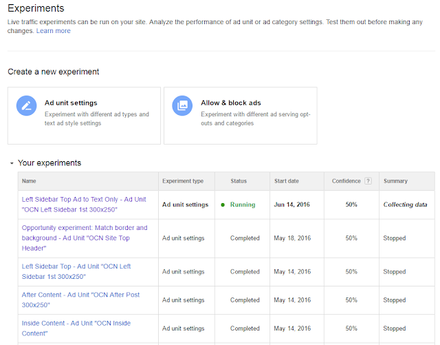 Okay so that’s it for the Experiment panel of Google Adsense.